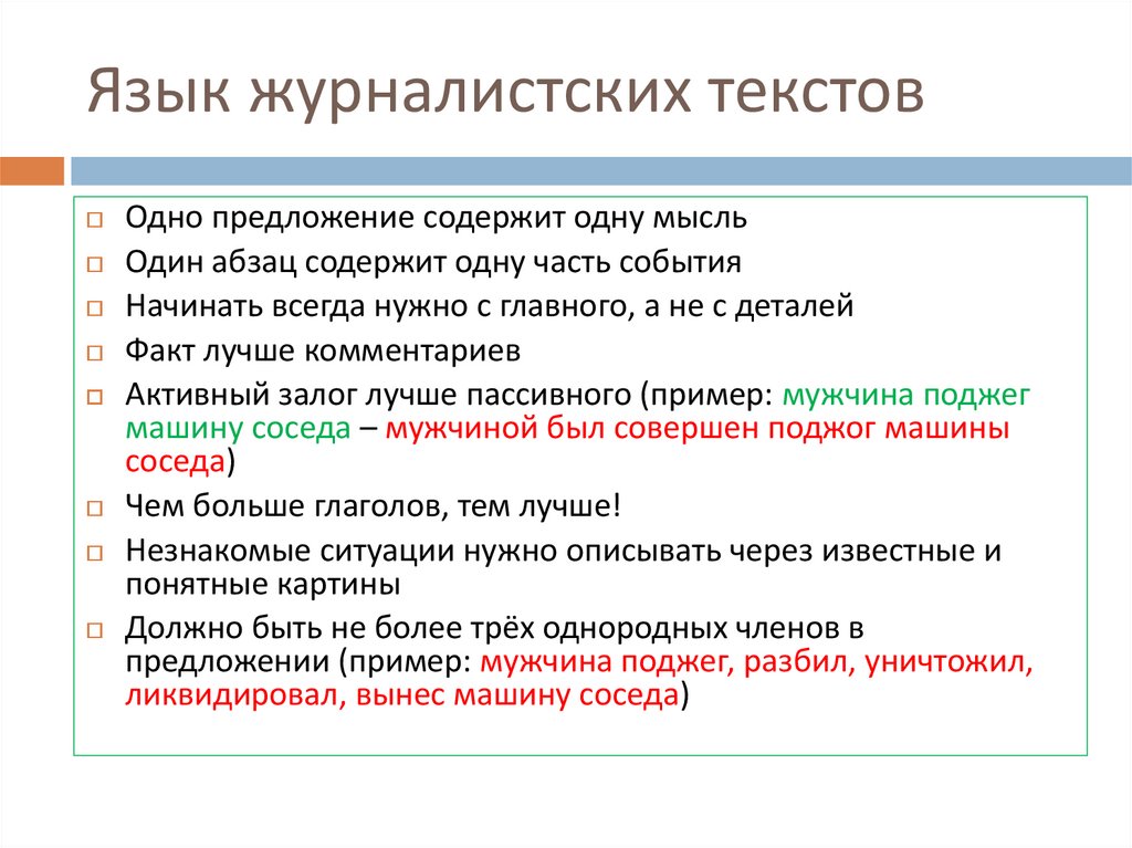 Язык журналистских текстовОдно предложение содержит одну мысль