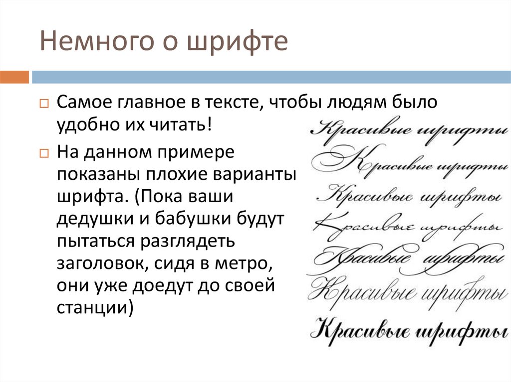 Пример приемлемого шрифтаРазумеется, играться с шрифтом можно по