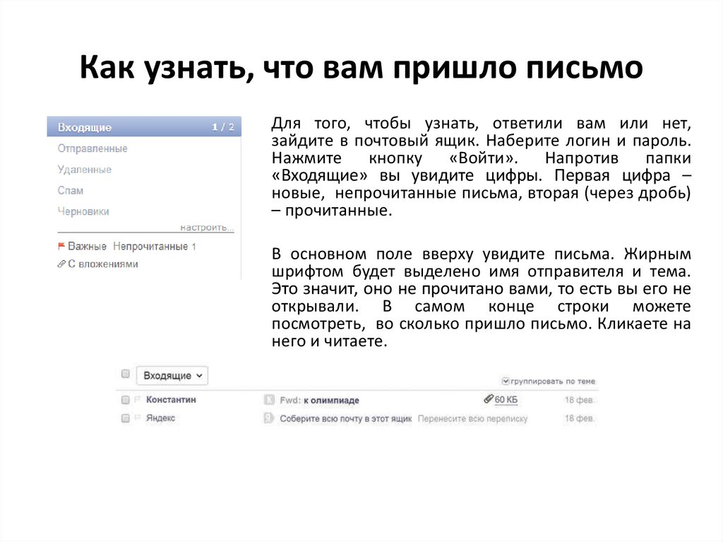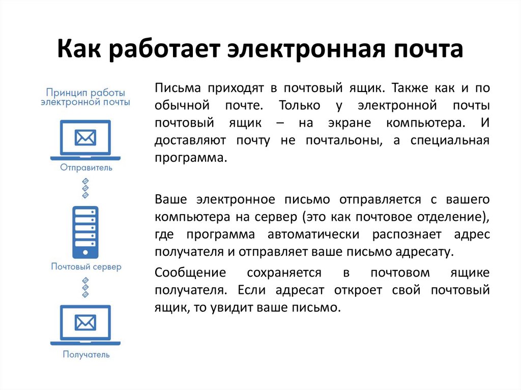 Как работает электронная почтаПисьма приходят в почтовый ящик. Также как и по