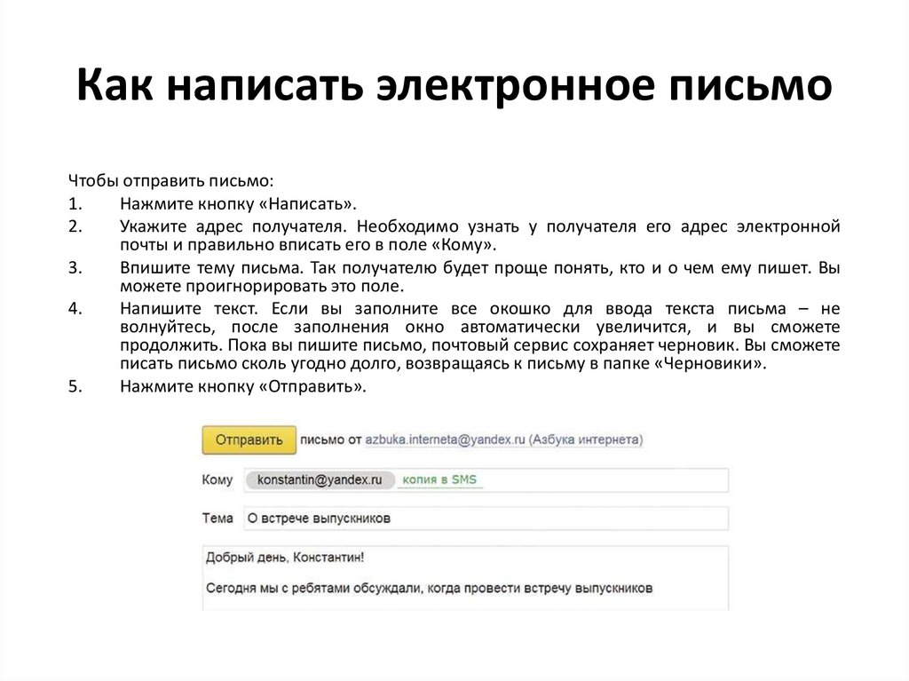 продолжить. Пока вы пишите письмо, почтовый сервис сохраняет черновик. Вы сможете