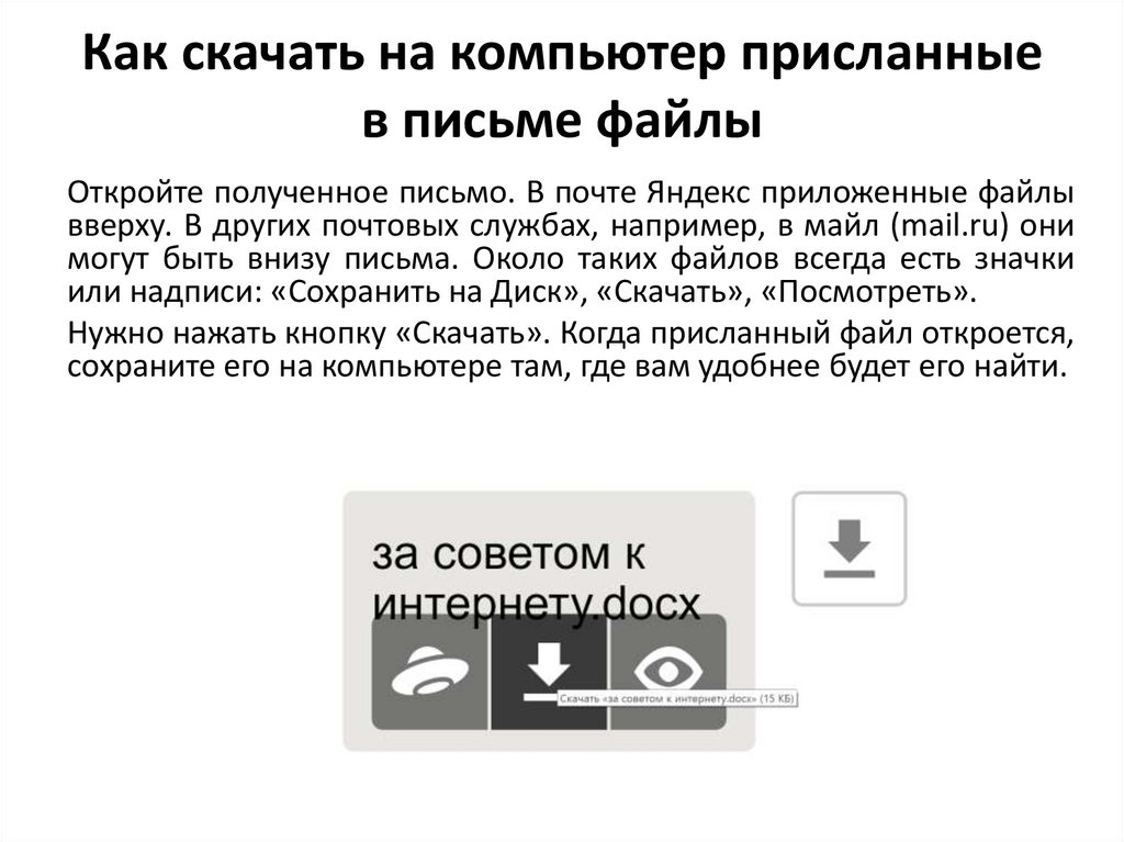 Откройте полученное письмо. В почте Яндекс приложенные файлы