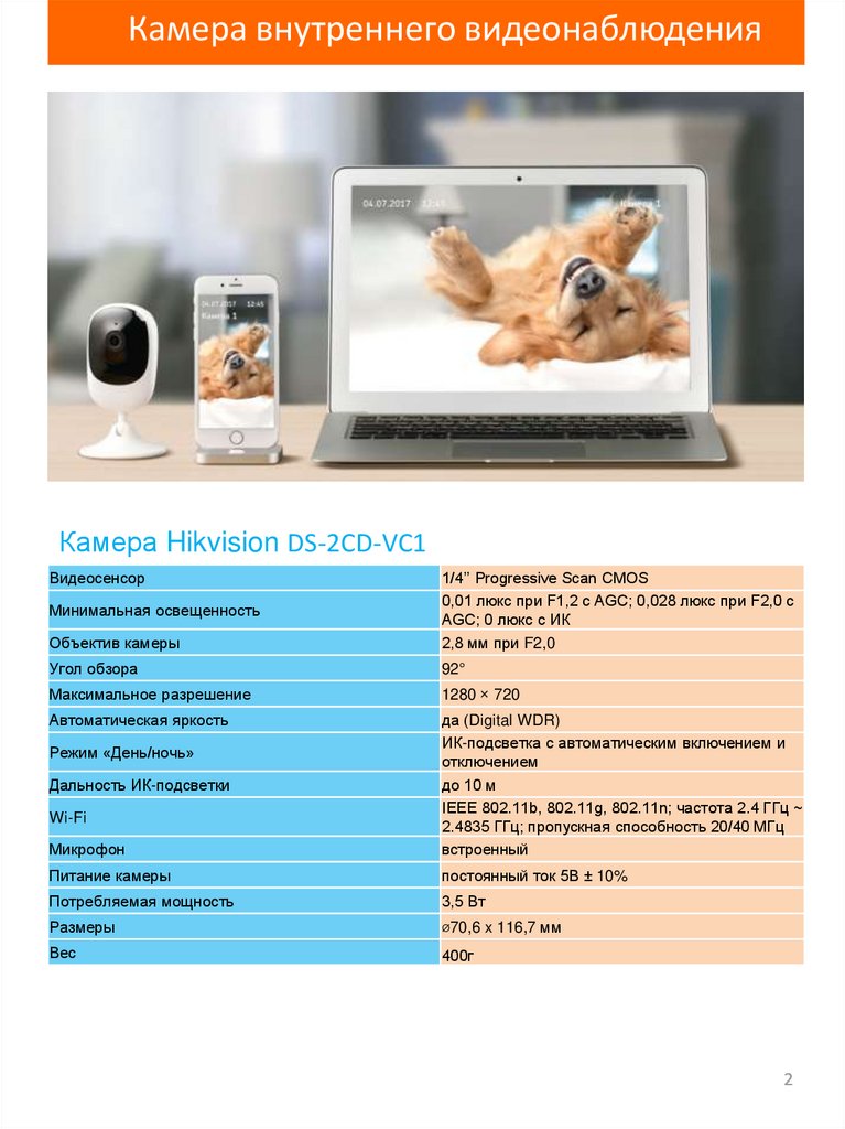 Камера внутреннего видеонаблюденияКамера Hikvision DS-2CD-VC1