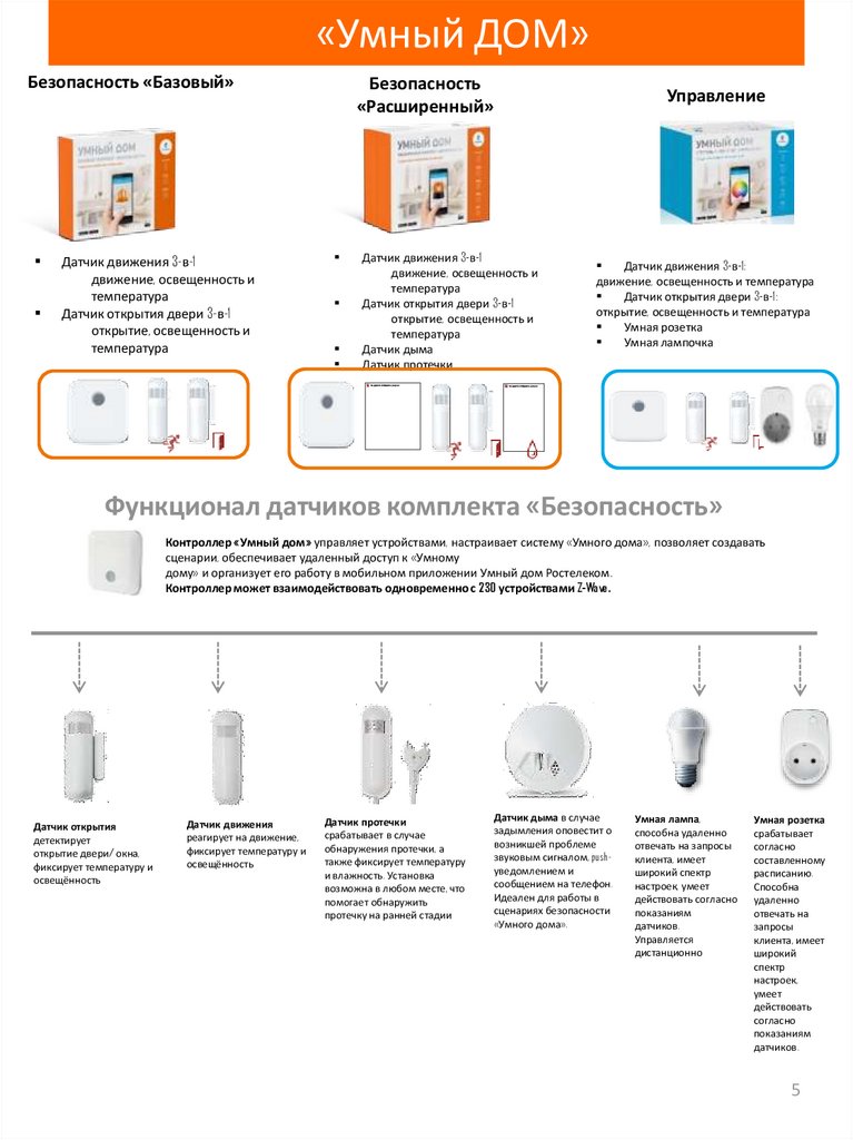 Функционал датчиков комплекта «Безопасность»