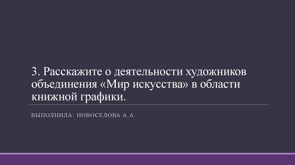 3. Расскажите о деятельности художниковобъединения «Мир искусства» в области