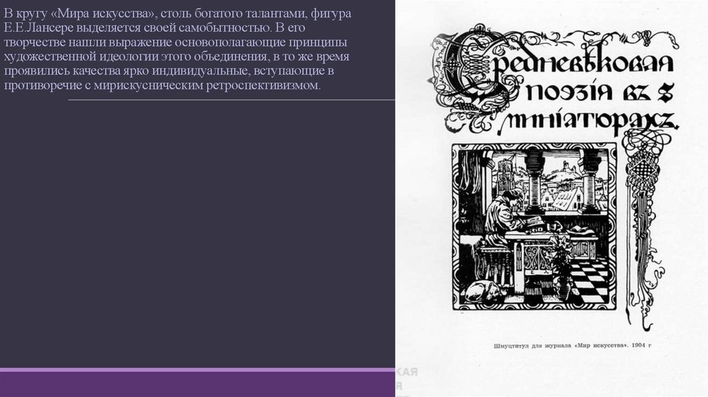 В кругу «Мира искусства», столь богатого талантами, фигураЕ.Е.Лансере выделяется своей самобытностью. В его