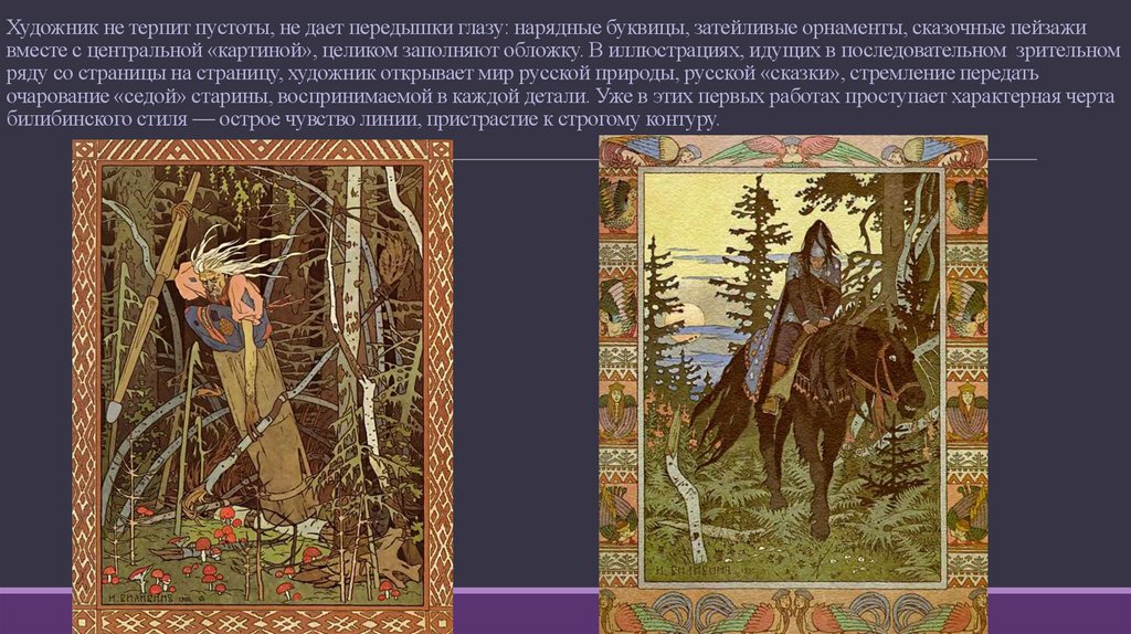 ряду со страницы на страницу, художник открывает мир русской природы, русской «сказки», стремление передать