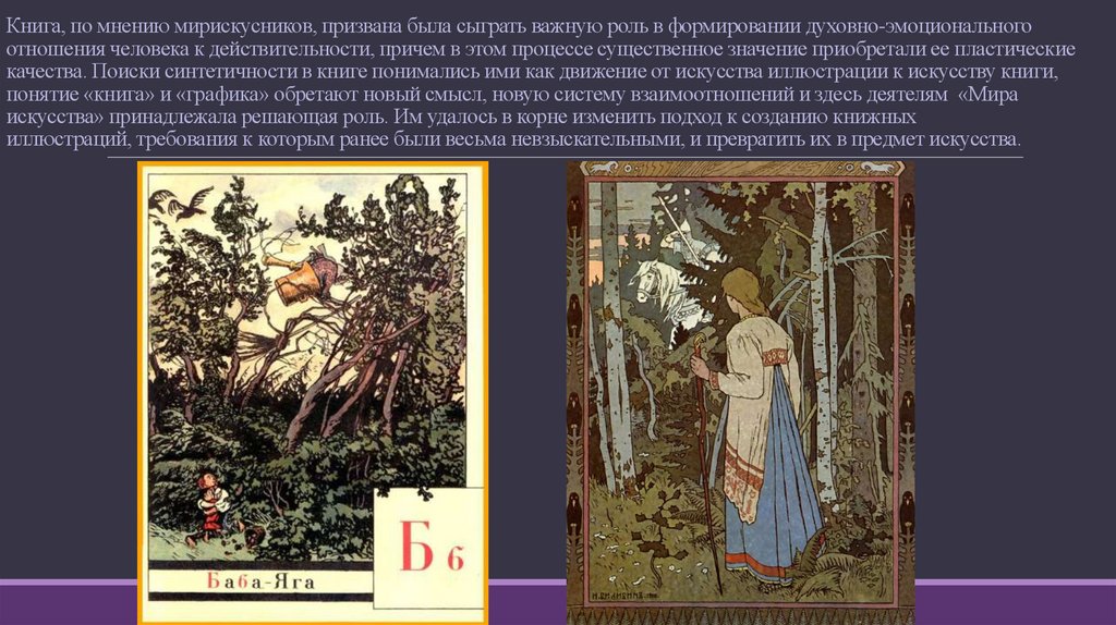 Книга, по мнению мирискусников, призвана была сыграть важную роль в формировании духовно-эмоциональногоотношения человека к действительности, причем в этом процессе существенное значение приобретали ее пластические