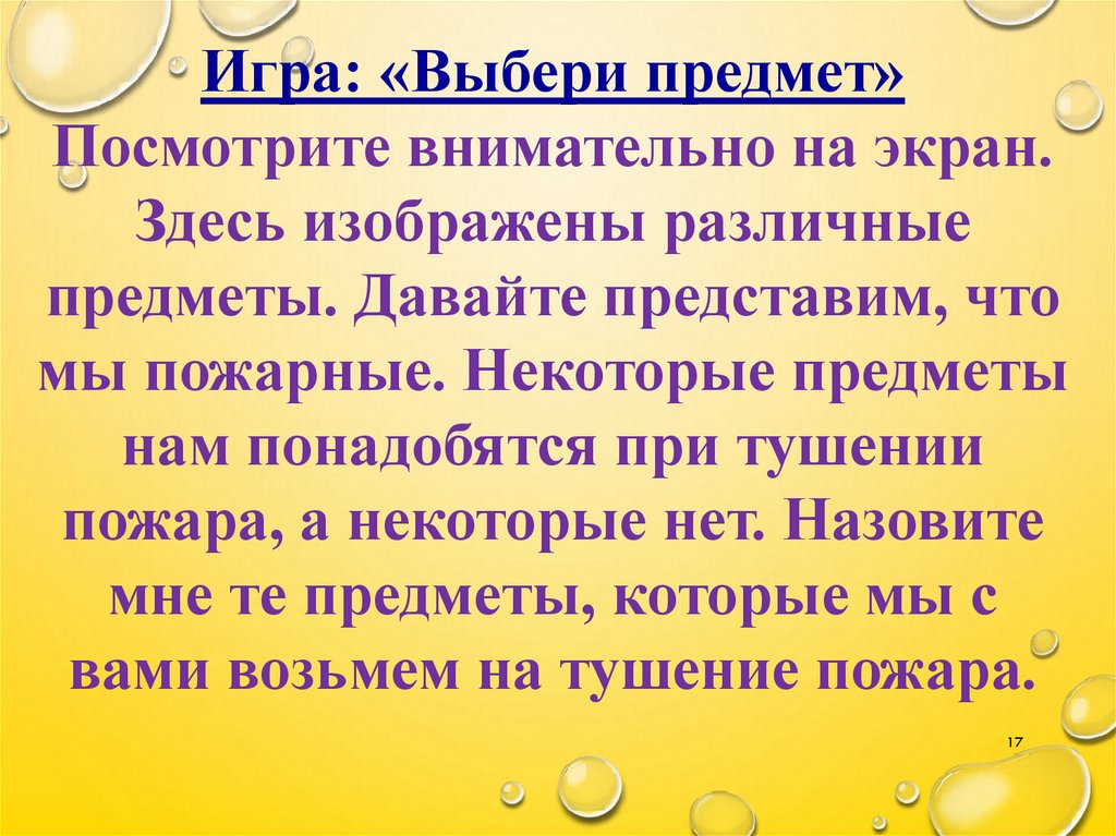 Игра: «Выбери предмет»Посмотрите внимательно на экран.