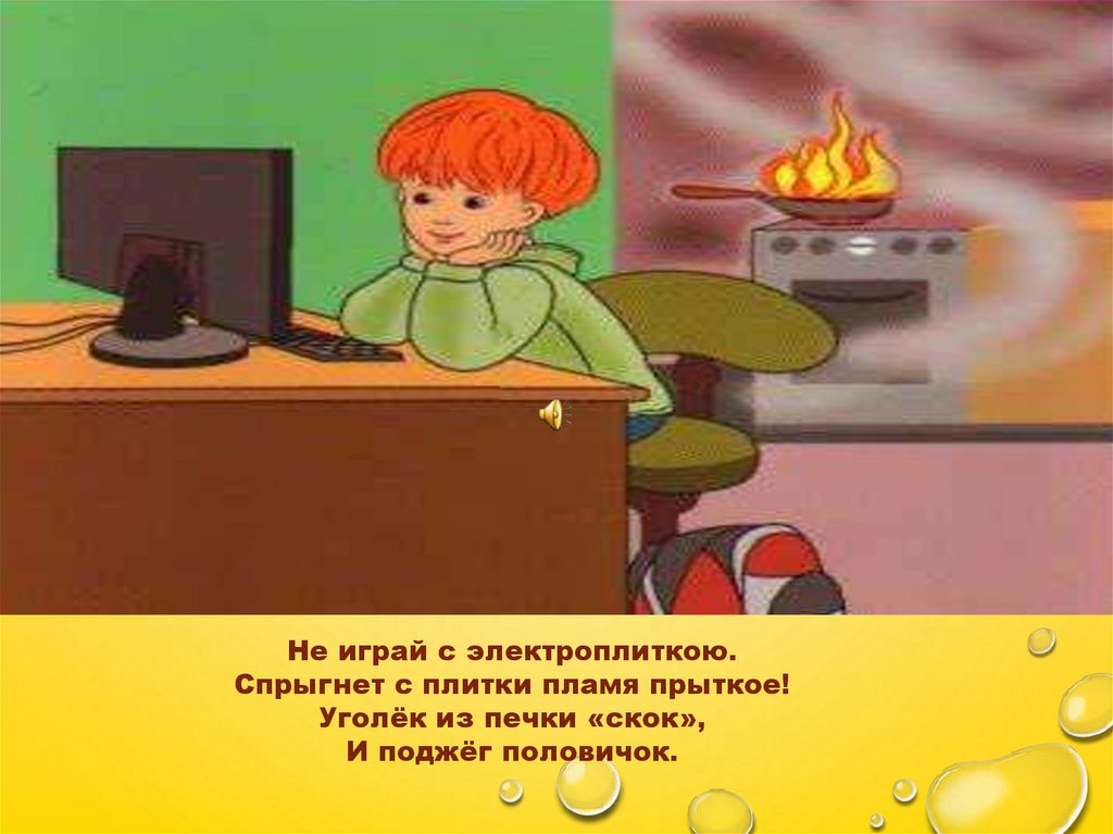 Не играй с электроплиткою.Спрыгнет с плитки пламя прыткое!