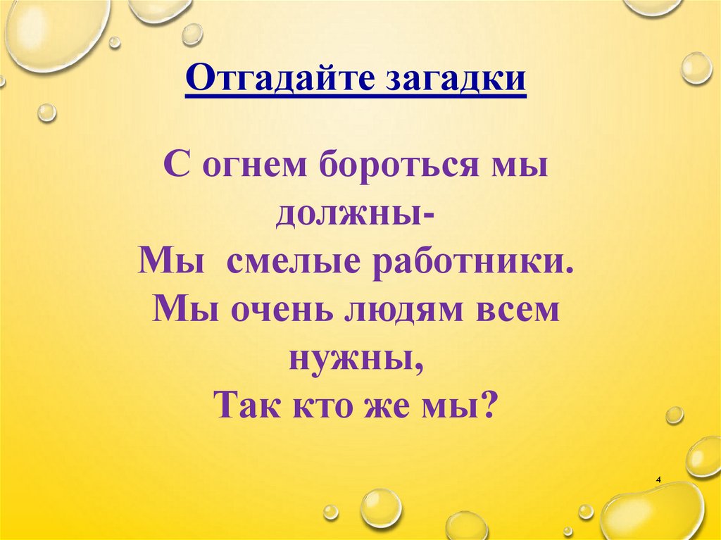 Отгадайте загадкиС огнем бороться мы