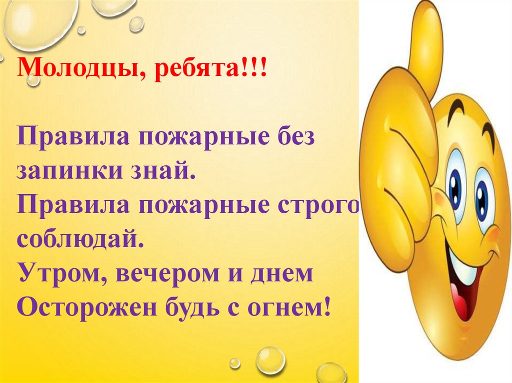 Молодцы, ребята!!!Правила пожарные без