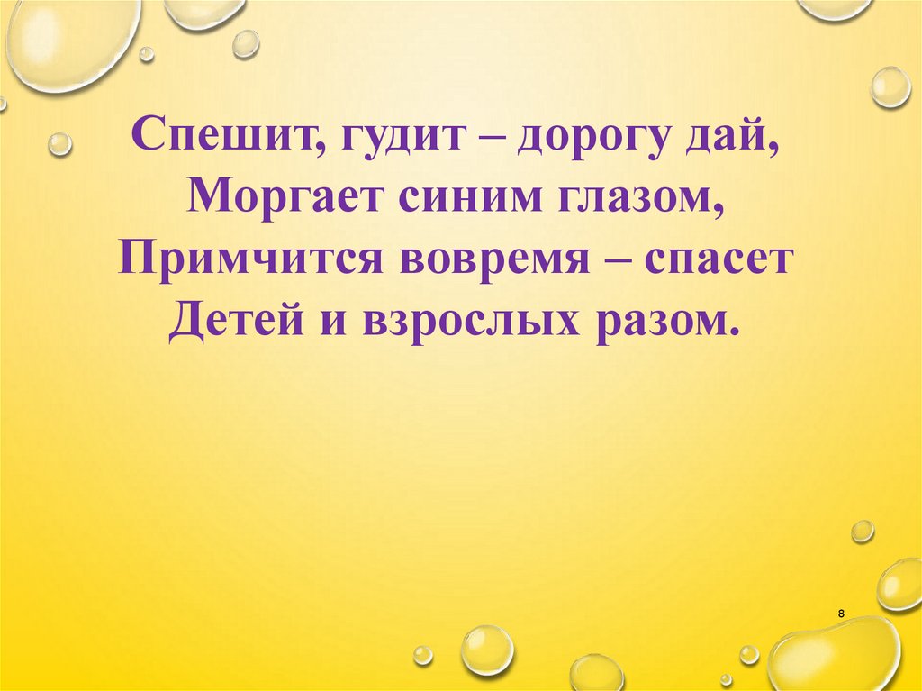 Спешит, гудит – дорогу дай,Моргает синим глазом,