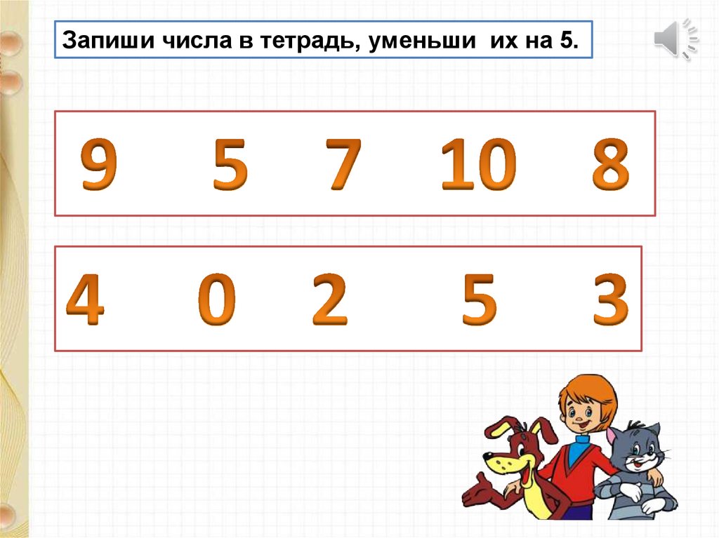 Запиши числа в тетрадь, уменьши их на 5.5.