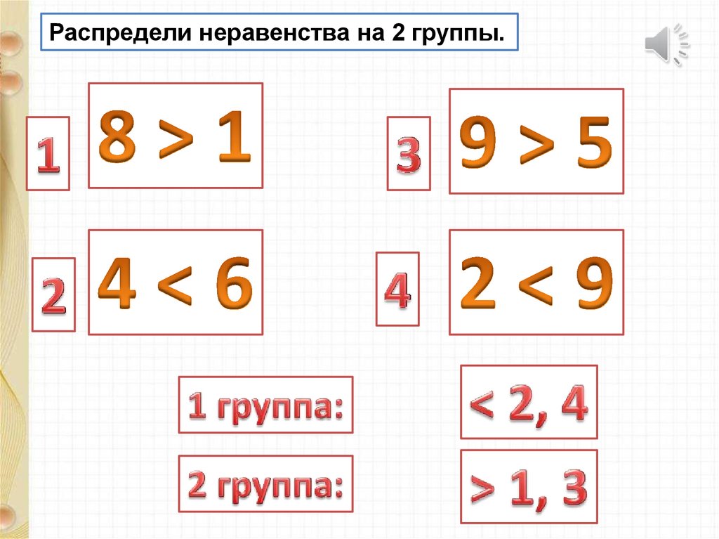 Распредели неравенства на 2 группы.6.