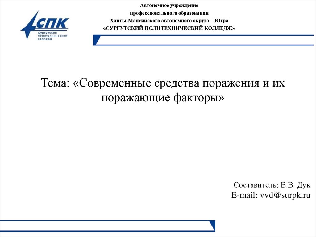 Тема: «Современные средства поражения и их