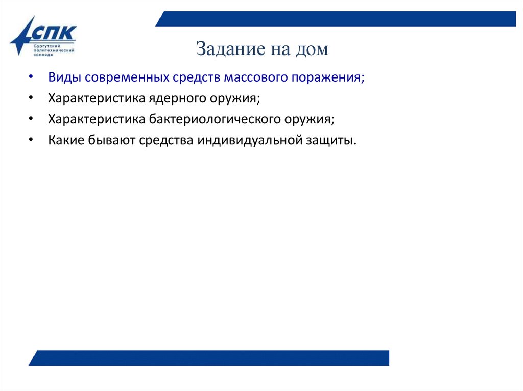 Задание на домВиды современных средств массового поражения;