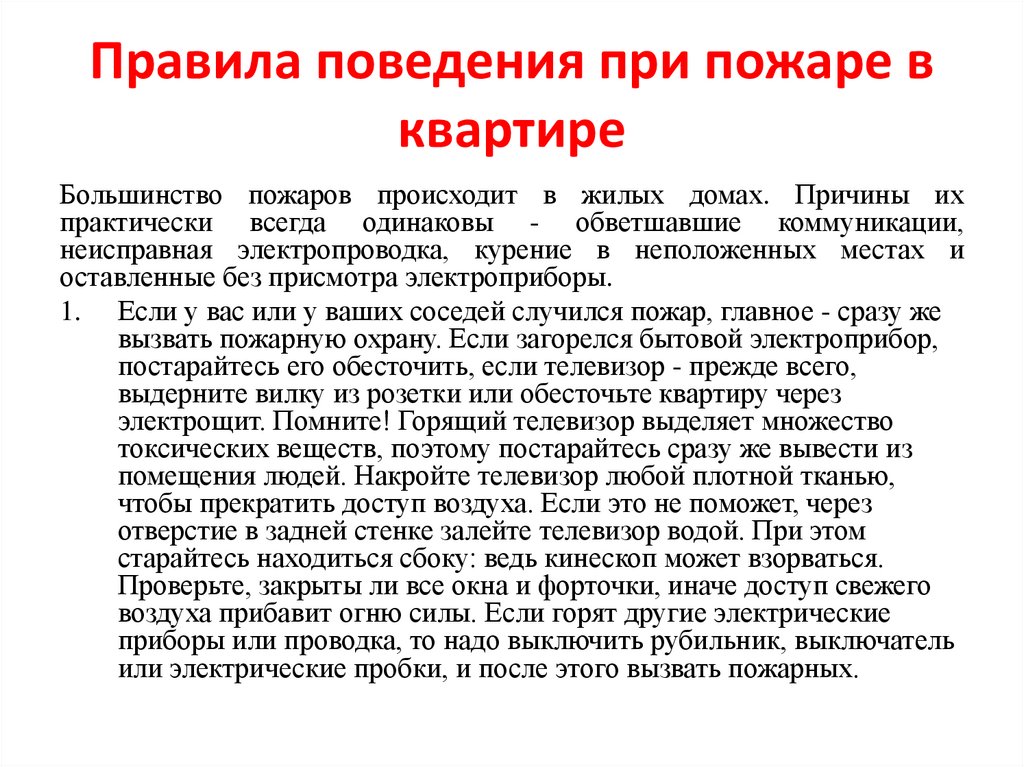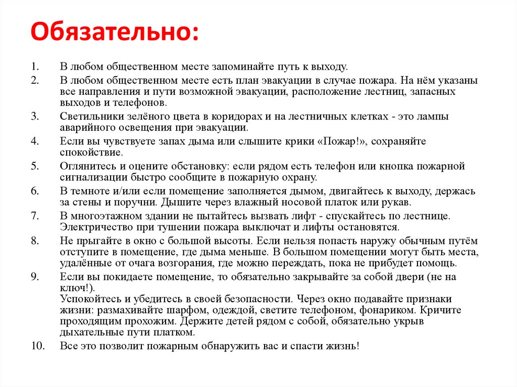 ведут в тупик). Находясь в высотном доме, не бегите вниз сквозь пламя, а используйте возможность спастись на