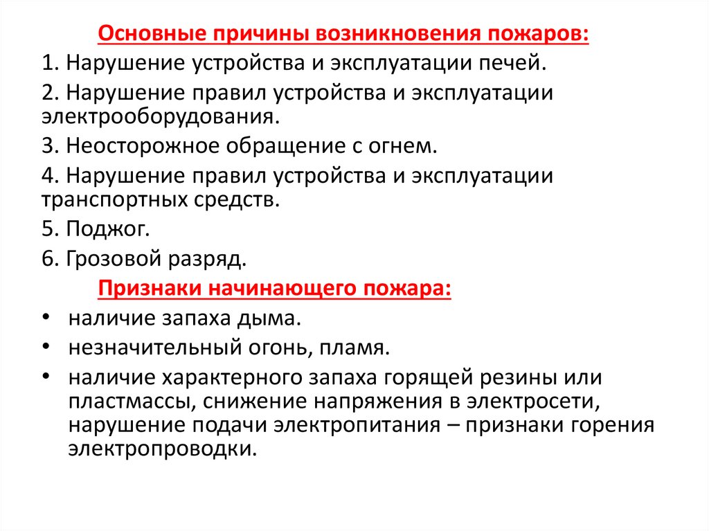 Основные причины возникновения пожаров:1. Нарушение устройства и эксплуатации печей.