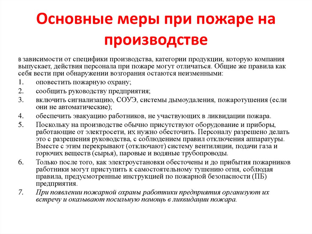 выпускает, действия персонала при пожаре могут отличаться. Общие же правила как