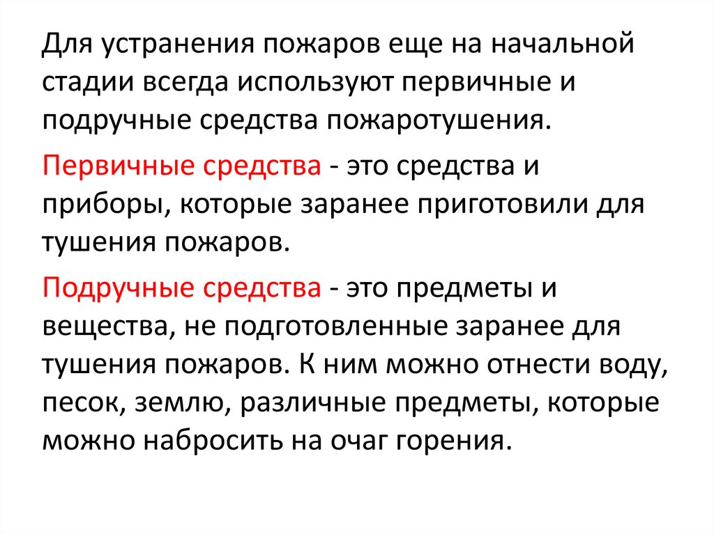 Для устранения пожаров еще на начальнойстадии всегда используют первичные и