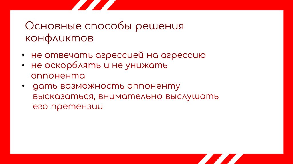 Основные способы решенияконфликтов