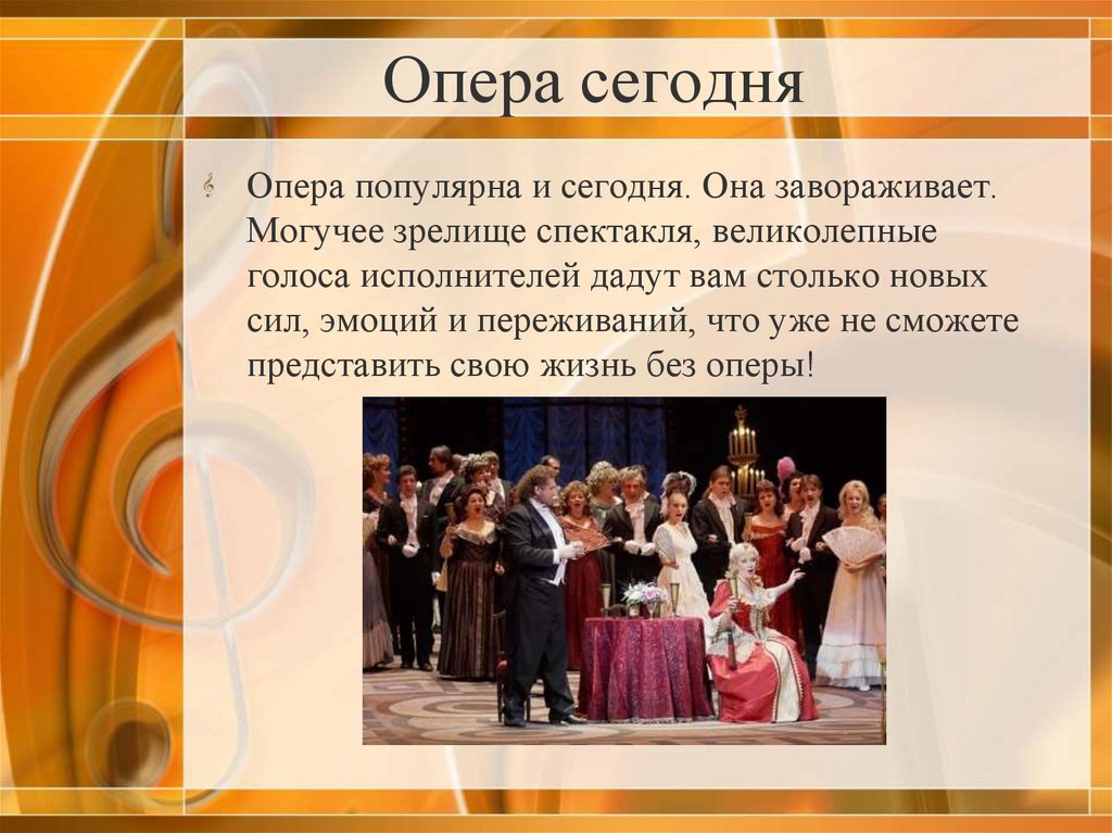 Опера сегодняОпера популярна и сегодня. Она завораживает.