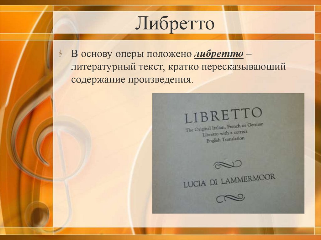 ЛибреттоВ основу оперы положено либретто –
