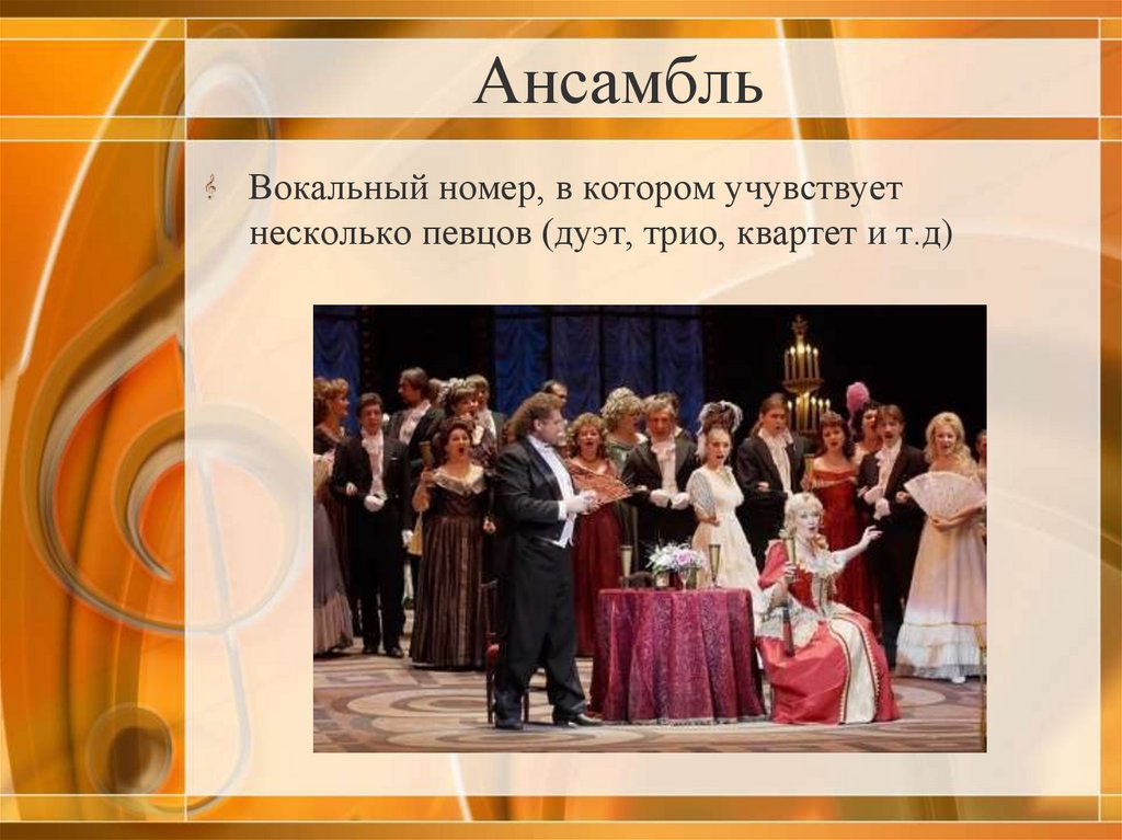 АнсамбльВокальный номер, в котором учувствует