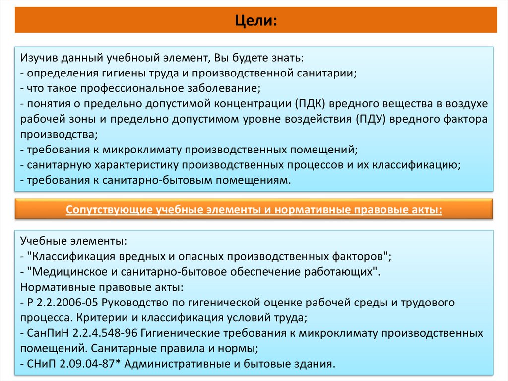 Сопутствующие учебные элементы и нормативные правовые акты: