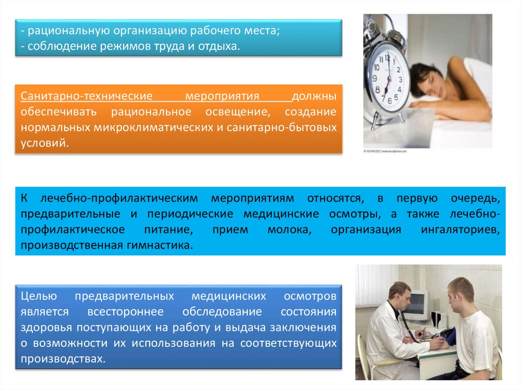 - рациональную организацию рабочего места;- соблюдение режимов труда и отдыха.