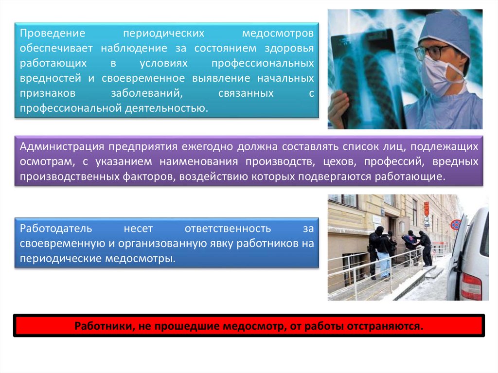 предварительные и периодические медицинские осмотры, а также лечебнопрофилактическое питание, прием молока, организация ингаляториев,