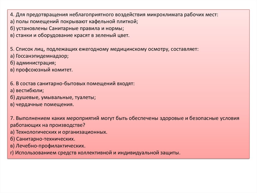 7. Выполнением каких мероприятий могут быть обеспечены здоровые и безопасные условия