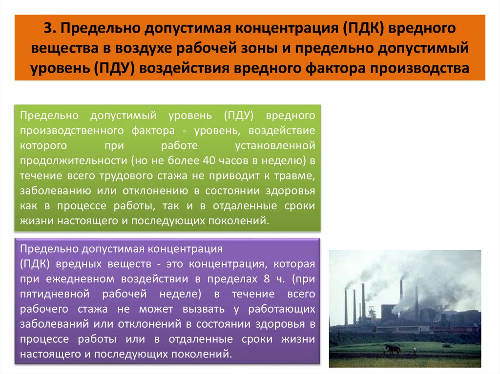 3. Предельно допустимая концентрация (ПДК) вредноговещества в воздухе рабочей зоны и предельно допустимый