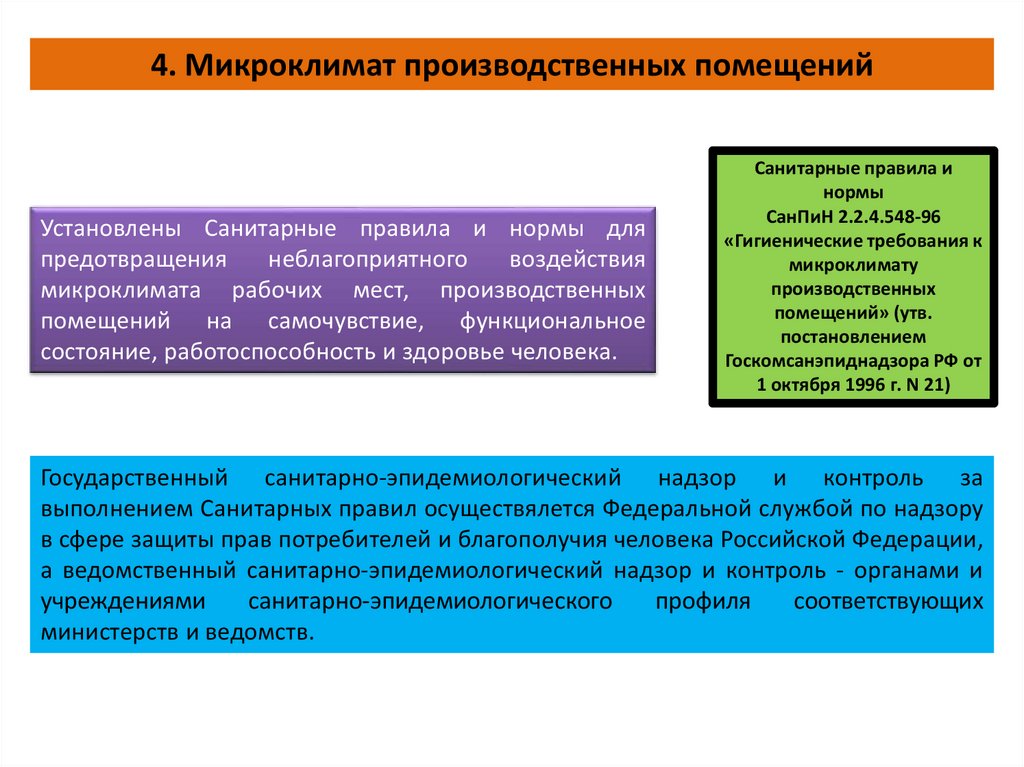 - СанПиН 2.2.4.548-96 Гигиенические требования к микроклимату производственных