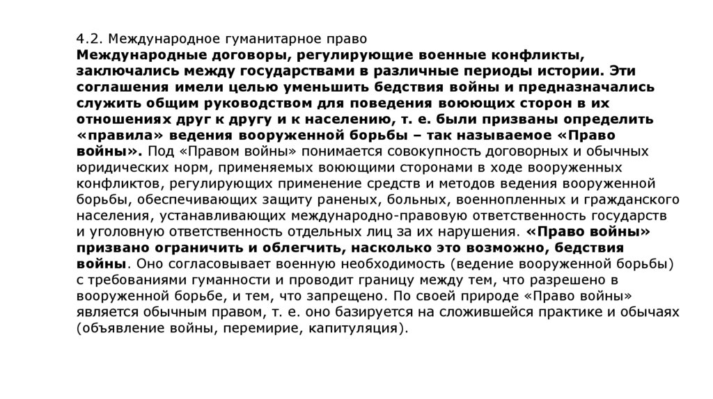 4.2. Международное гуманитарное правоМеждународные договоры, регулирующие военные конфликты,