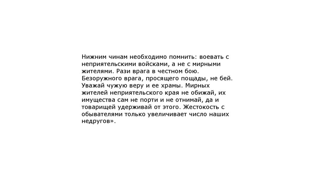 Нижним чинам необходимо помнить: воевать снеприятельскими войсками, а не с мирными