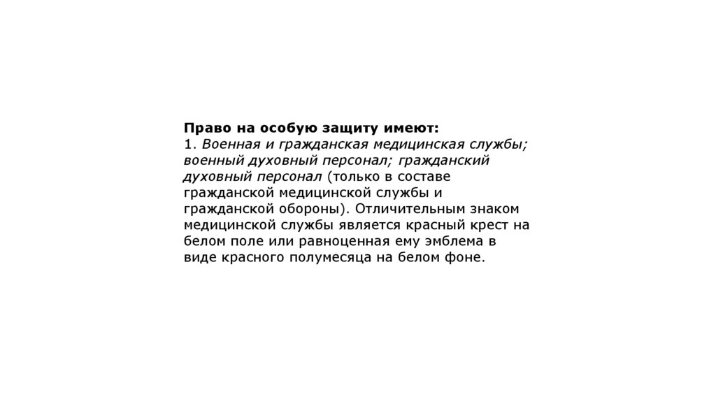 Право на особую защиту имеют:1. Военная и гражданская медицинская службы;