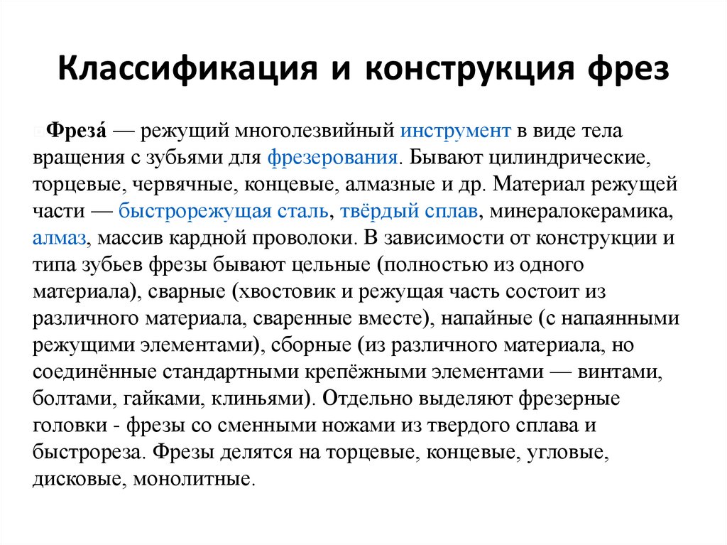 Классификация и конструкция фрезФреза́