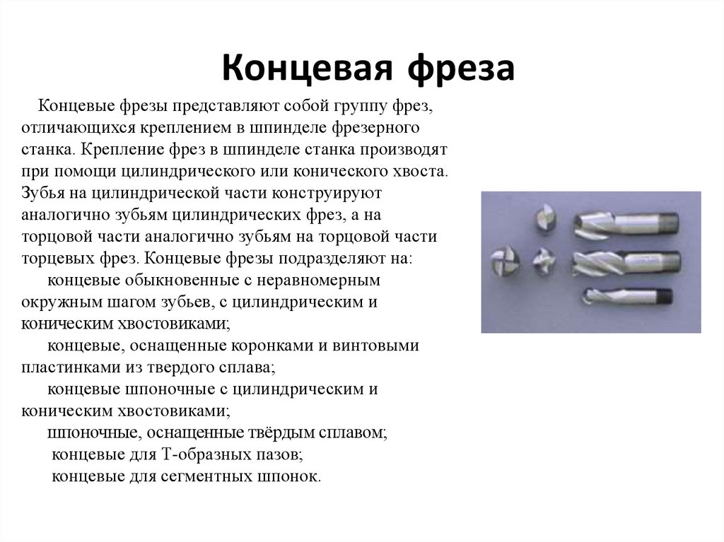 Концевая фреза• Концевые фрезы представляют собой группу фрез,