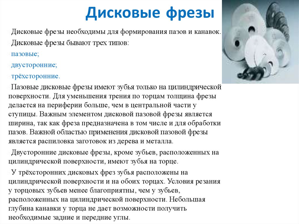 Пазовые дисковые фрезы имеют зубья только на цилиндрической