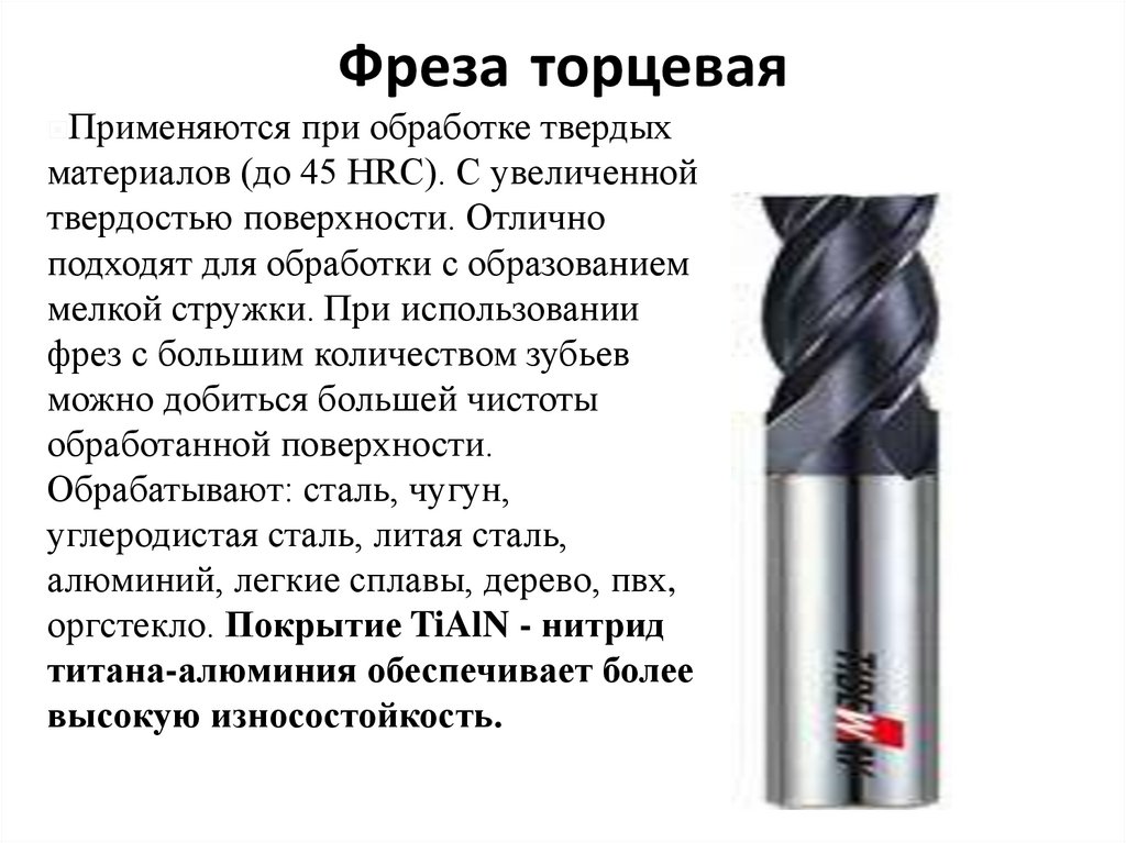 торцевые, червячные, концевые, алмазные и др. Материал режущей