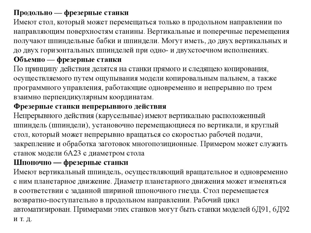 Продольно — фрезерные станкиИмеют стол, который может перемещаться только в продольном направлении по