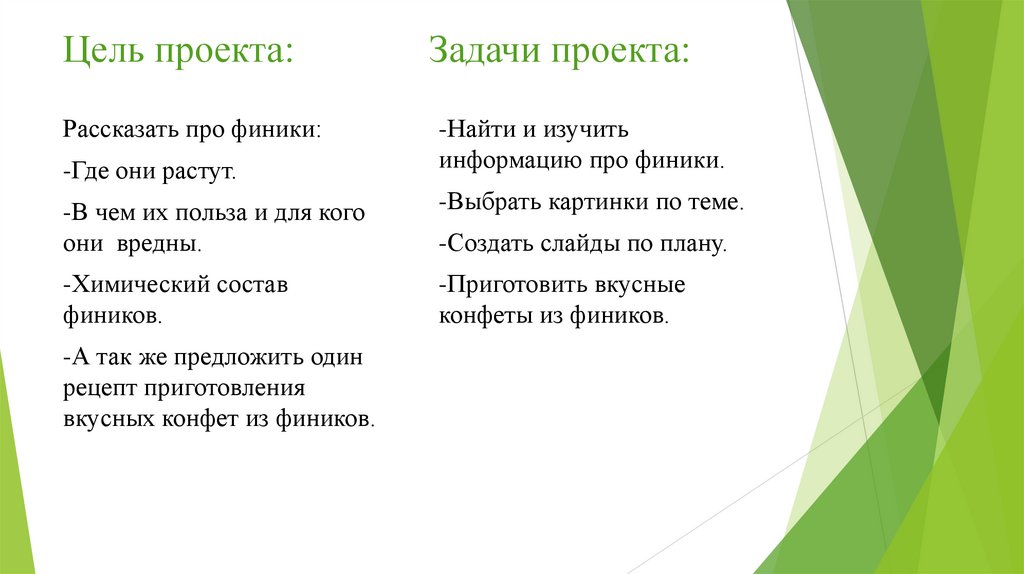 Цель проекта:Рассказать про финики: