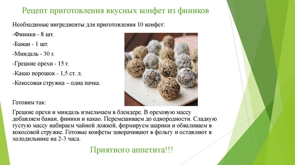 вкусных конфет из фиников.