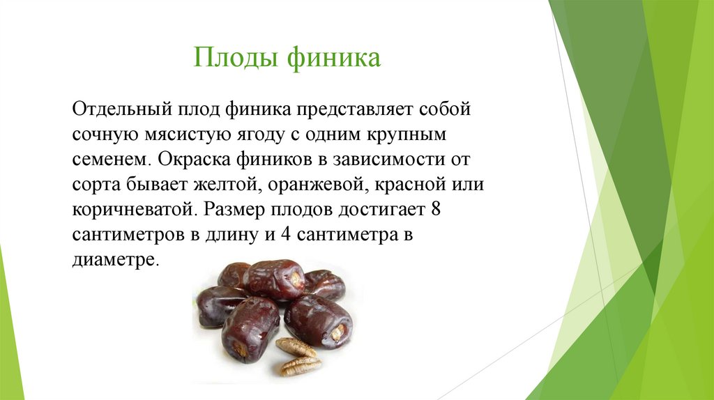 семенем. Окраска фиников в зависимости от
