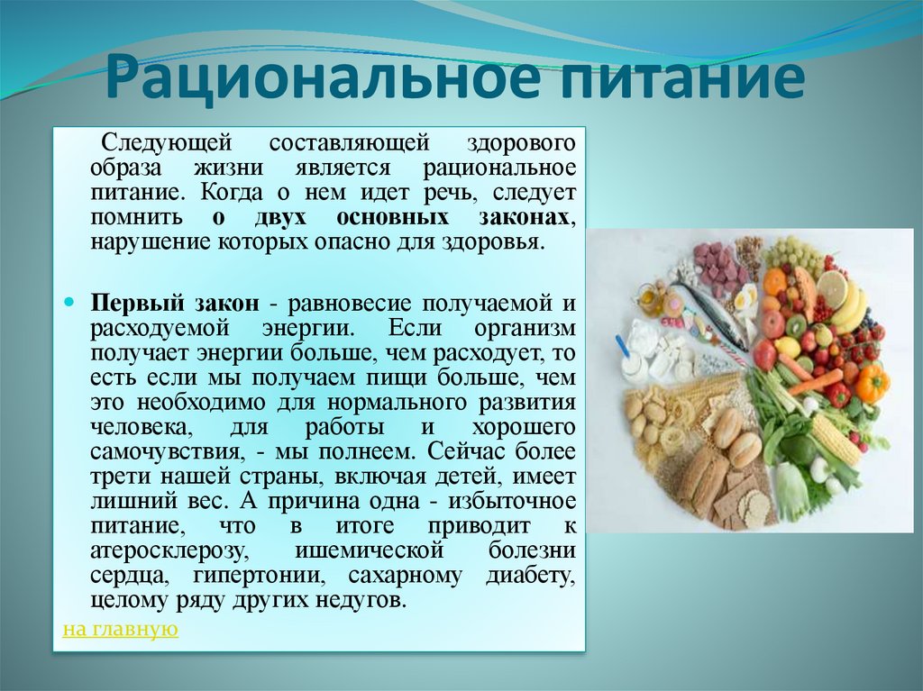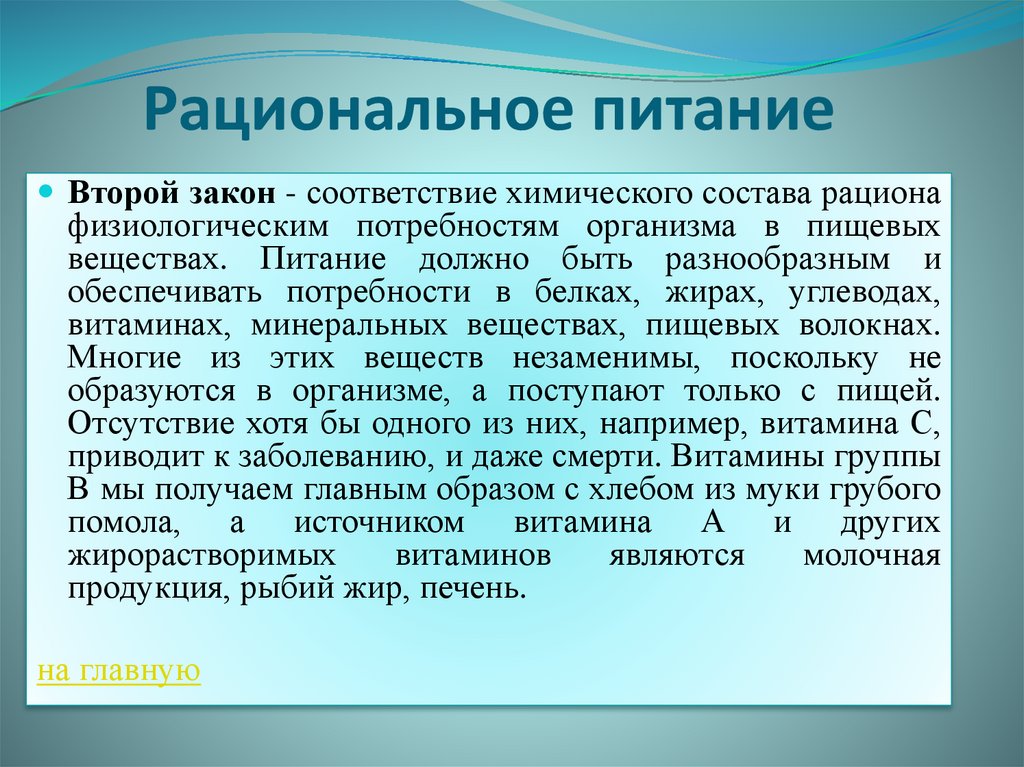 Рациональное питаниеВторой закон - соответствие химического состава рациона