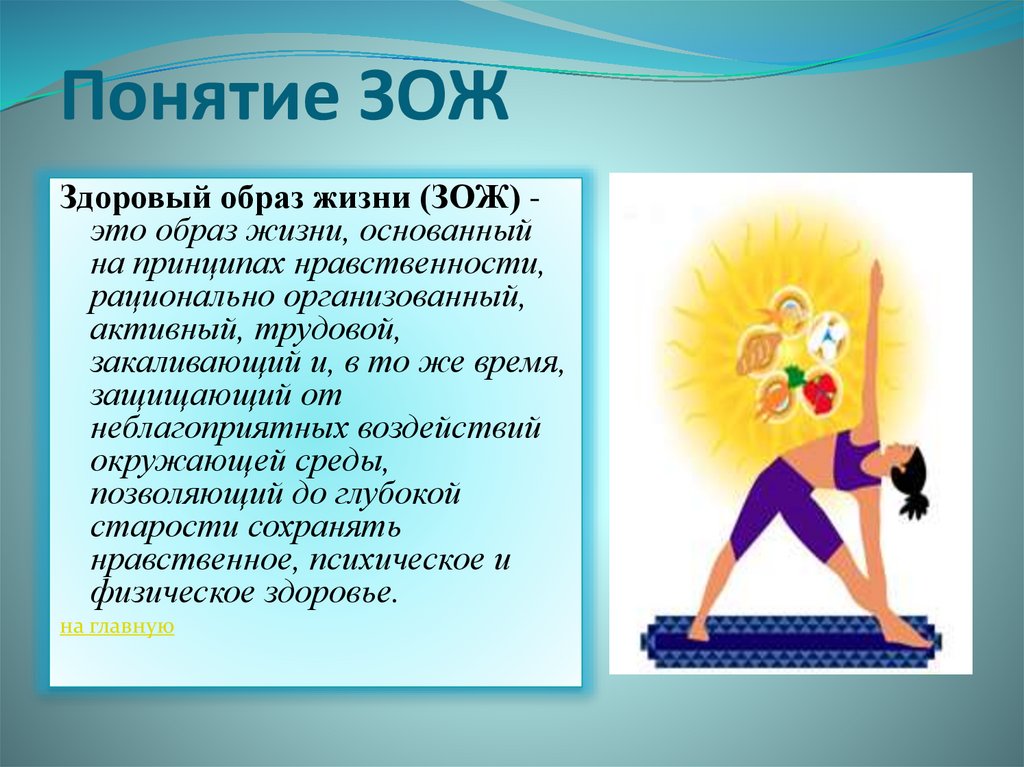 Понятие ЗОЖЗдоровый образ жизни (ЗОЖ) это образ жизни, основанный