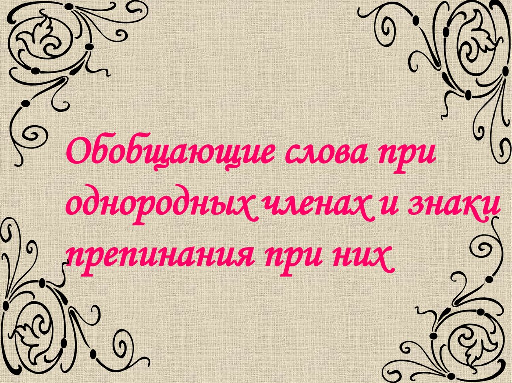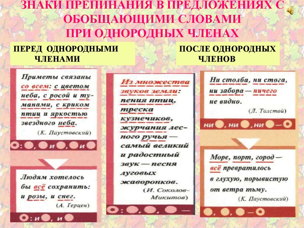 ЗНАКИ ПРЕПИНАНИЯ В ПРЕДЛОЖЕНИЯХ СОБОБЩАЮЩИМИ СЛОВАМИ