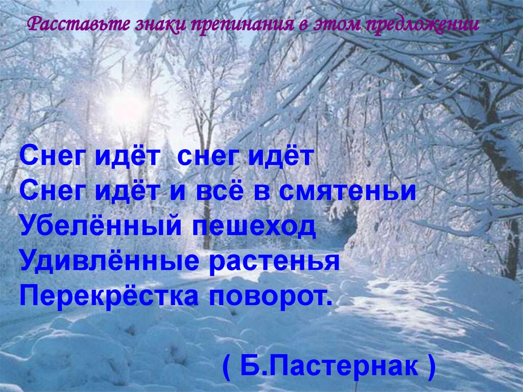 Расставьте знаки препинания в этом предложенииСнег идёт снег идёт