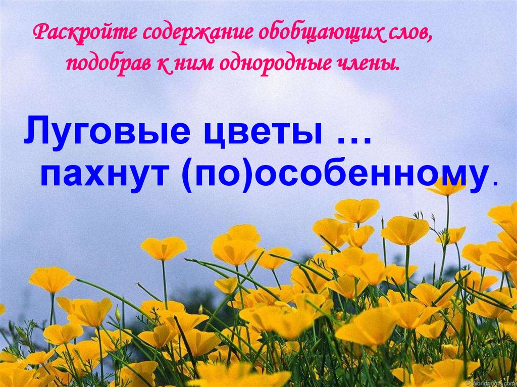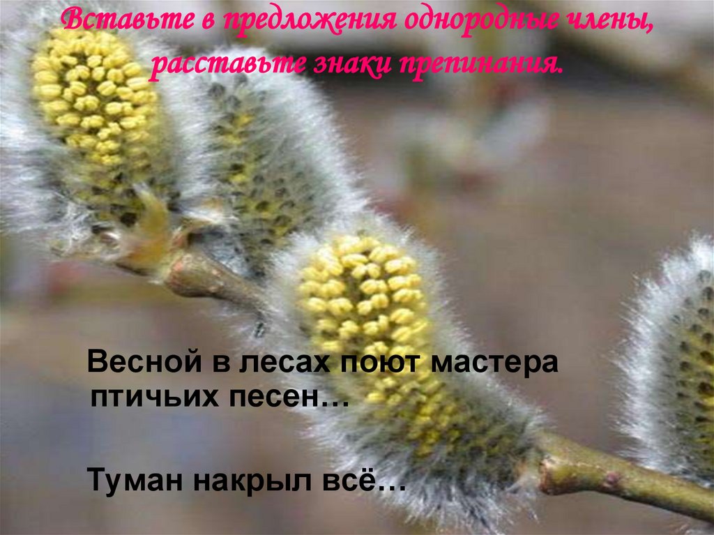 Продолжить полученное предложениеоднородными членами к обобщающему